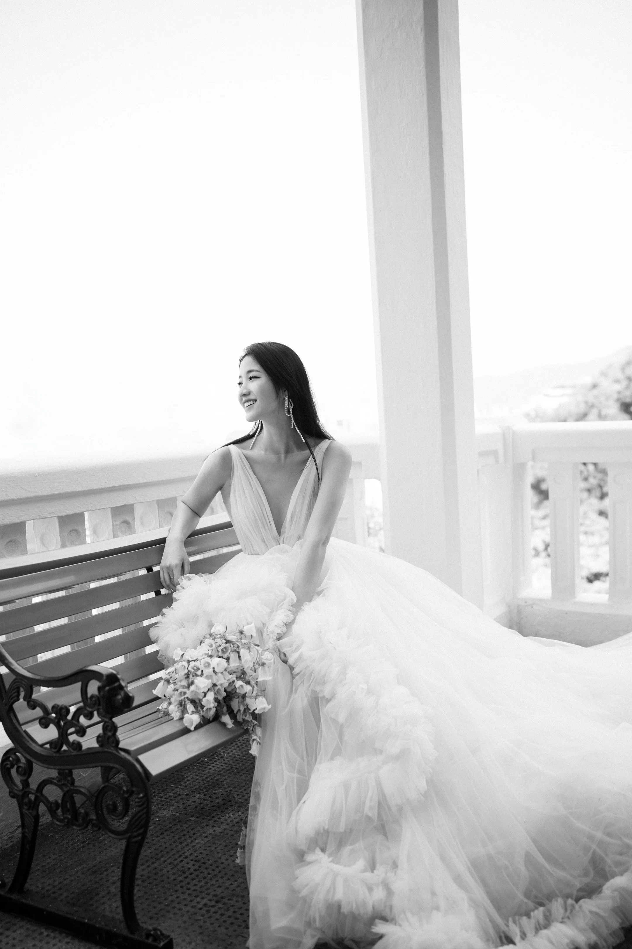 In a celebrated love story, Yvonne, the eptiome of elegance as a jaorí bride, captivates with her enchanting presence. adorned in the resplendent celine tulle ball gown featuring a striking v-shape neckline, she embodies timeless sophistication.